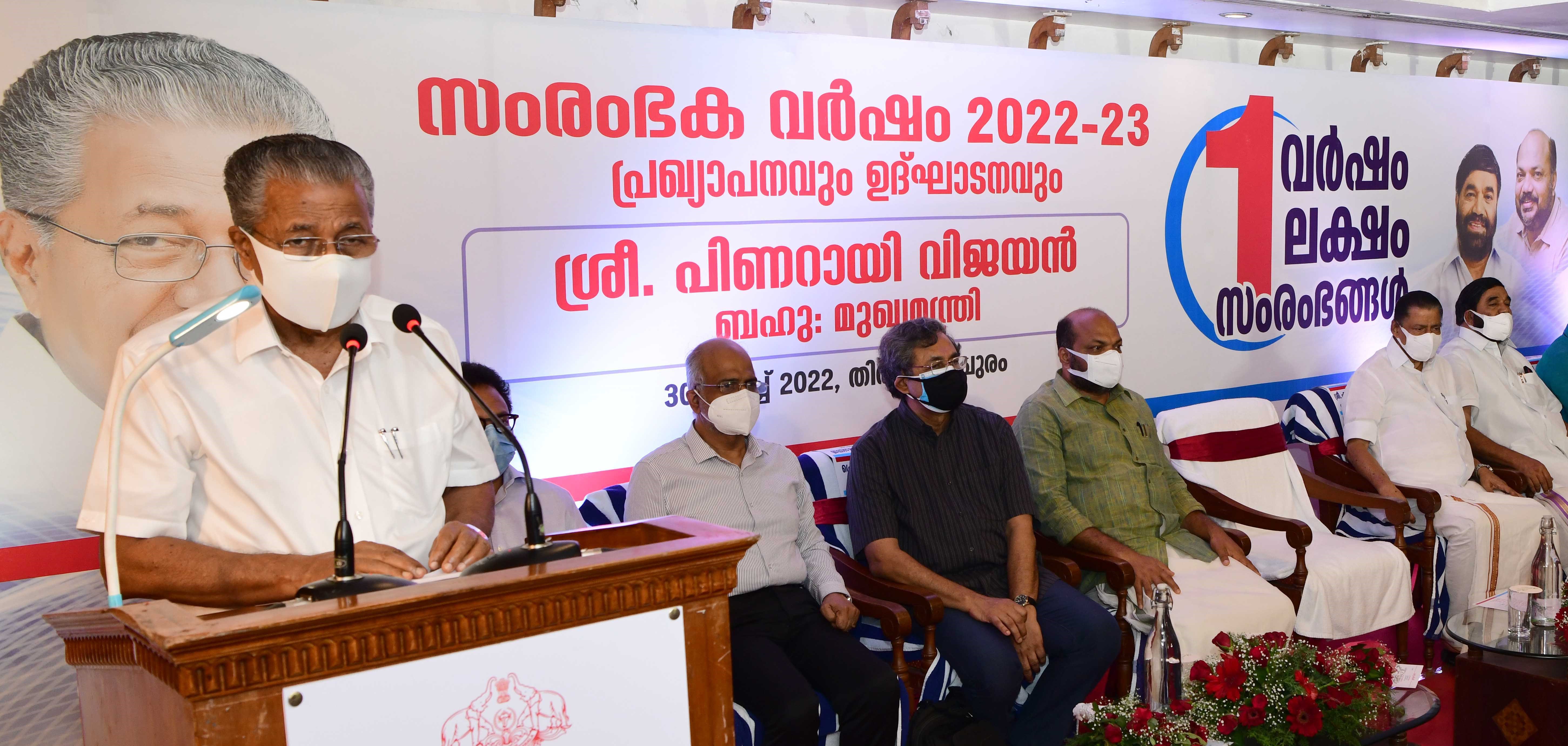 ഒരു വര്ഷം ഒരു ലക്ഷം സംരഭങ്ങള് പദ്ധതി ബഹു. മുഖ്യമന്ത്രി ഉദ്ഘാടനം ചെയ്യുന്നു (30.03.2022)
